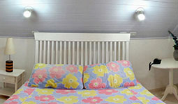 Cama Box Queen, ar condicionado, Telefone, Televisão, Frigobar e Lareira. Confira abaixo algumas fotos do Chalé 4: