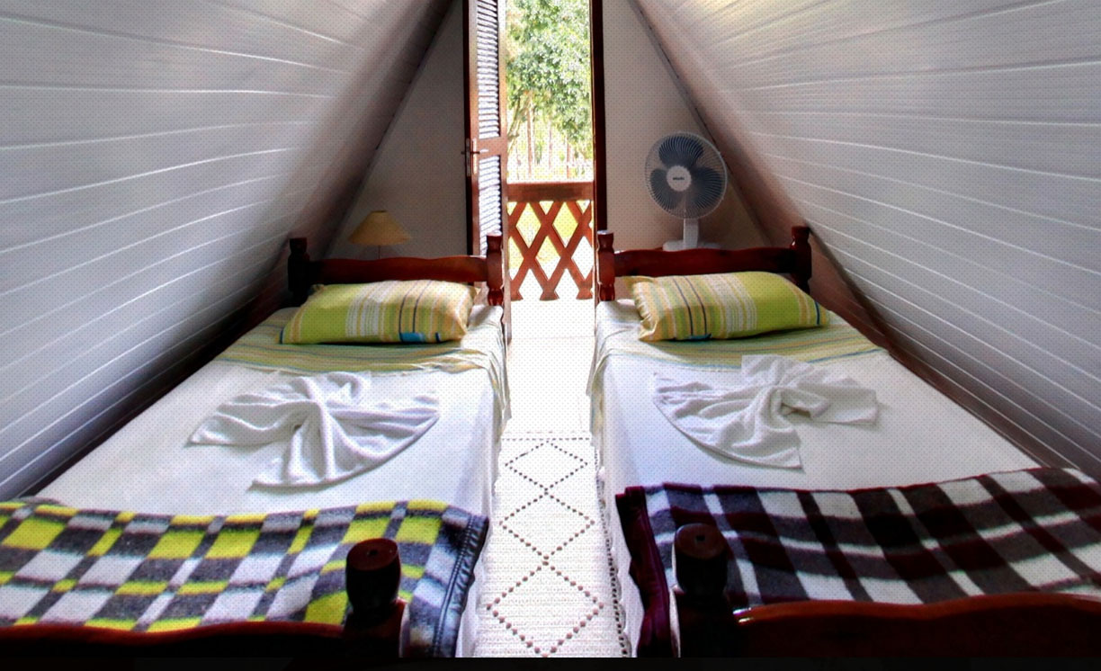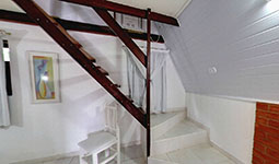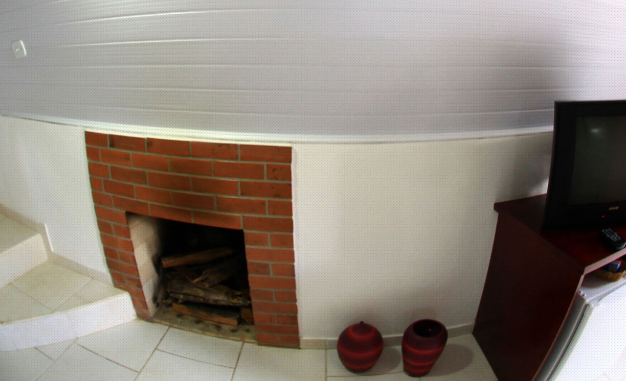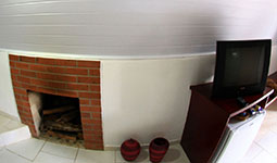 Cama Box Queen, Ar condicionado, Telefone, Televisão, Frigobar e Lareira. Confira abaixo algumas fotos do Chalé 1: